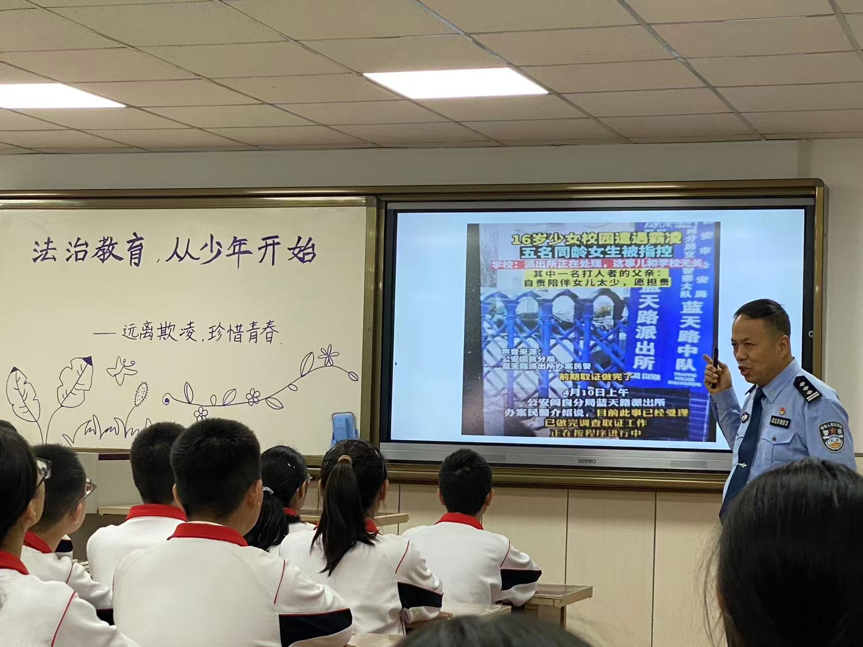 为深入推进法治校园建设,提升自我保护意识,筑牢校园安全防线,9月19日下午,西安市第八十九中学教育集团特邀公安部处置突发事件专家;省、市平安校园创建组专家;西安市公安局校园安全办公室余学军主任一行3人来学校进行预防欺凌法制专题宣讲活动。