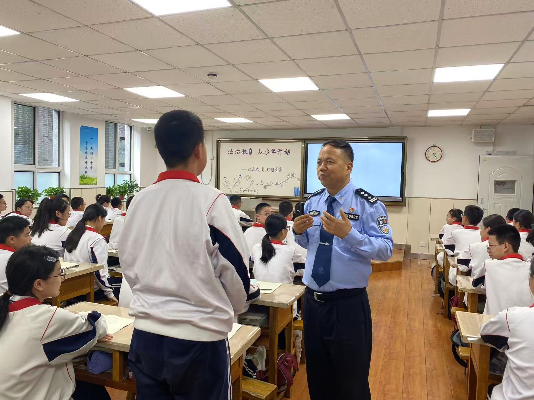 他首先结合真实案例,聚焦“校园安全风险防范与预防校园欺凌”,通过剖析社会关注度高的典型校园案例,讲解了故意伤害、寻衅滋事等未成年人的常见欺凌犯罪类型,引导学生清晰认知行为界限,不欺凌他人、不携带管制刀具、不抽烟喝酒、不进行大额游戏充值等,严守法律“红线”;他还重点强调了如何有效预防和应对欺凌的不法侵害,如第一时间向学校、家长报告、拨打110报警电话等,学会运用法律武器保护自己,合法合理保护自身权利。
