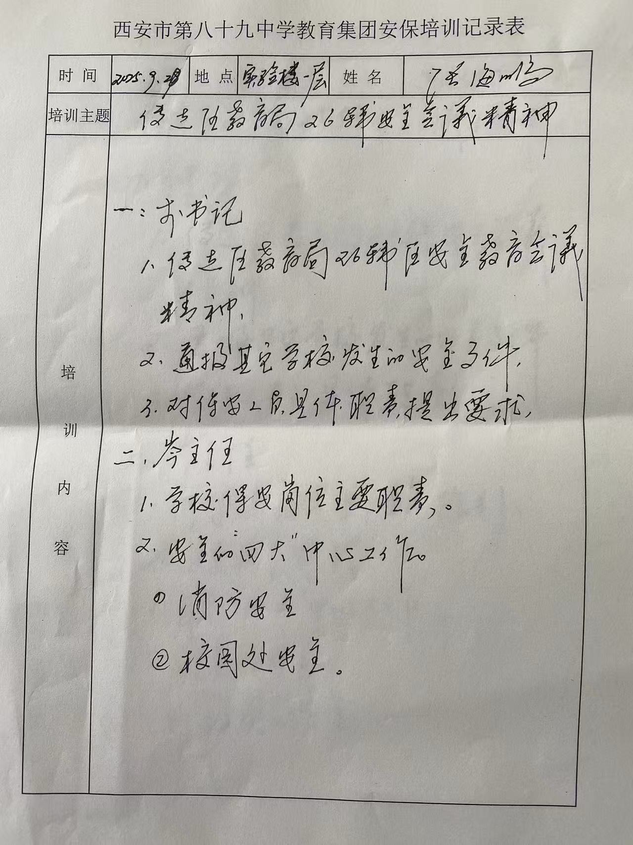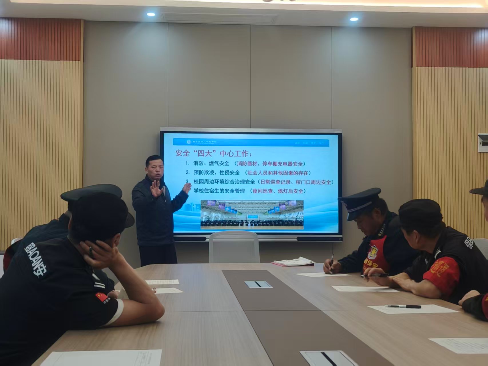 校园安全无小事,防微杜渐是关键。为进一步强化校园安全管理,提升安保队伍履职能力,切实筑牢校园安全防线。9月29日上午,西安市第八十九中学教育集团安保办组织召开校园安全工作专题培训会,集团负责学校安全工作的李政平副书记、安保主任、全体保安人员聚焦校园安全重点、难点;统一思想、明确职责、细化举措、认清形势、绷紧安全弦,扛起“守护责”。