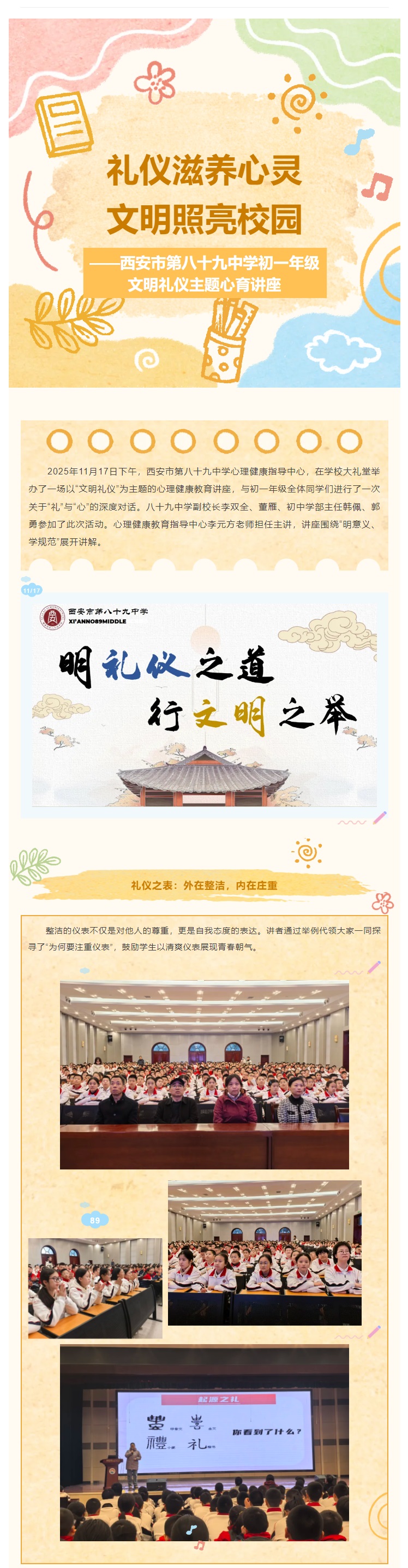 西安市第八十九中学初一年级文明礼仪主题心育讲座
