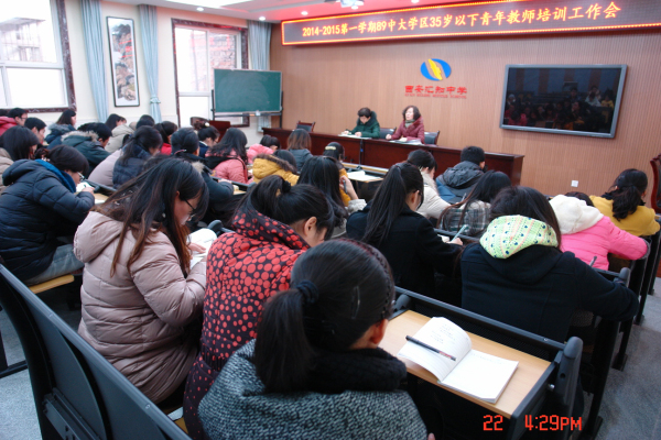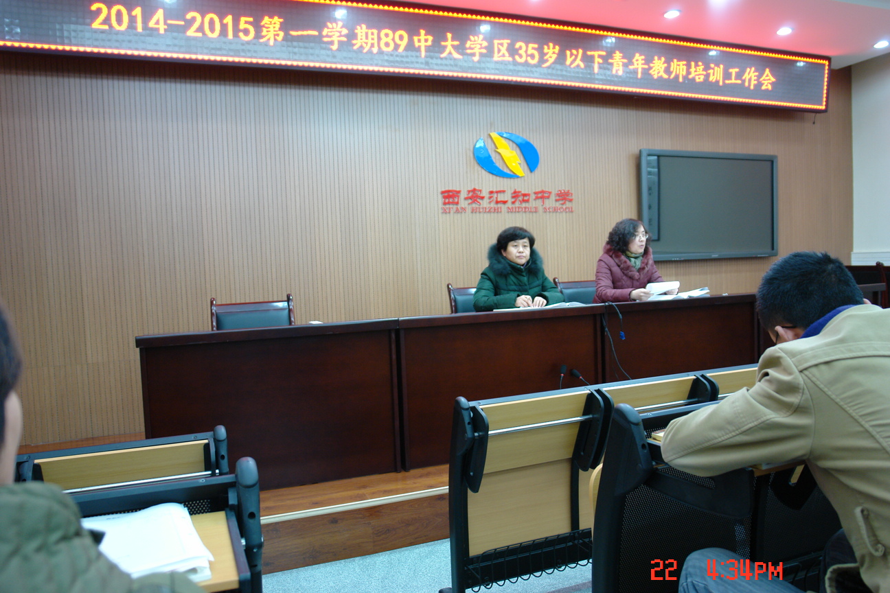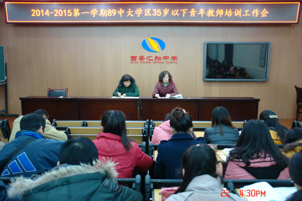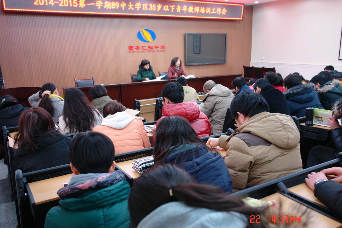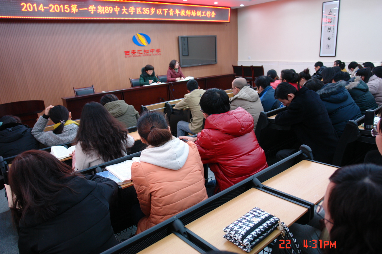 西安市89中及汇知中学35岁以下青年教师参加了此次培训会,会议由汇知教务处王主任主持,陈向东书记作了重要讲话。