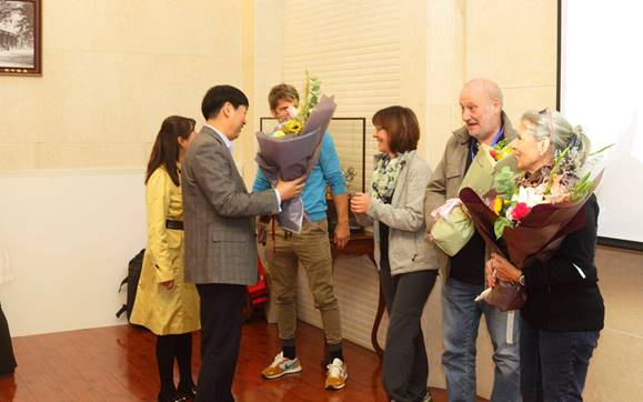 欢迎德国师生代表团仪式由李政平副书记主持,大屏幕播放着我校历年来与德国姊妹学校交流合作及开展相关活动的精彩剪影。吕高愿校长代表学校进行致辞。吕校长对德国师生表示热烈欢迎和亲切的问候,同时对德国姊妹校近来来与我校的合作交流所作出的贡献表示感谢。