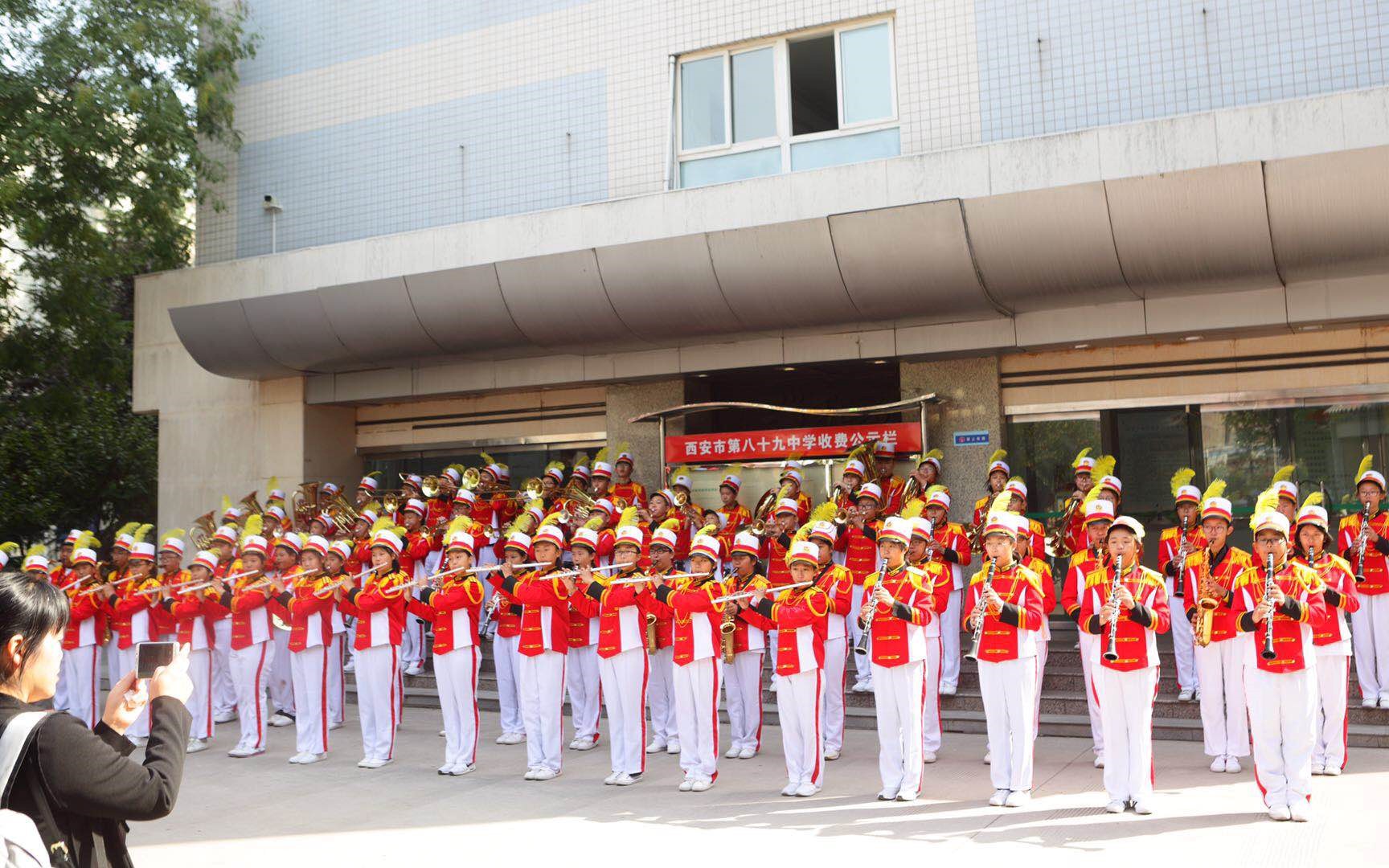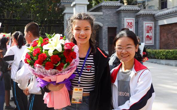 上午11:00,西安市第八十九中学校长吕高愿,校党总支副书记李政平等在我校畅叙楼接待了来宾一行,校管乐团演奏起雄壮激昂的迎宾曲迎接来自远道而来的贵宾,我校接待学生纷纷为自己的搭档送上了美丽的鲜花。2018年暑期,这些同学曾前往德国姊妹校进行友好交流访问,如今再次相见,中德学生都激动不已、彼此热情相拥,在畅叙楼前合影留念。