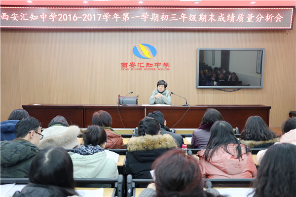 2017年1月20日下午,西安汇知中学在东电教室召开了初三月考质量分析会。陈向东书记、王彬主任以及初三年级全体任课教师参加了此次会议。会议由王主任主持,对本次月考情况进行了分析总结,陈书记作了重要讲话。