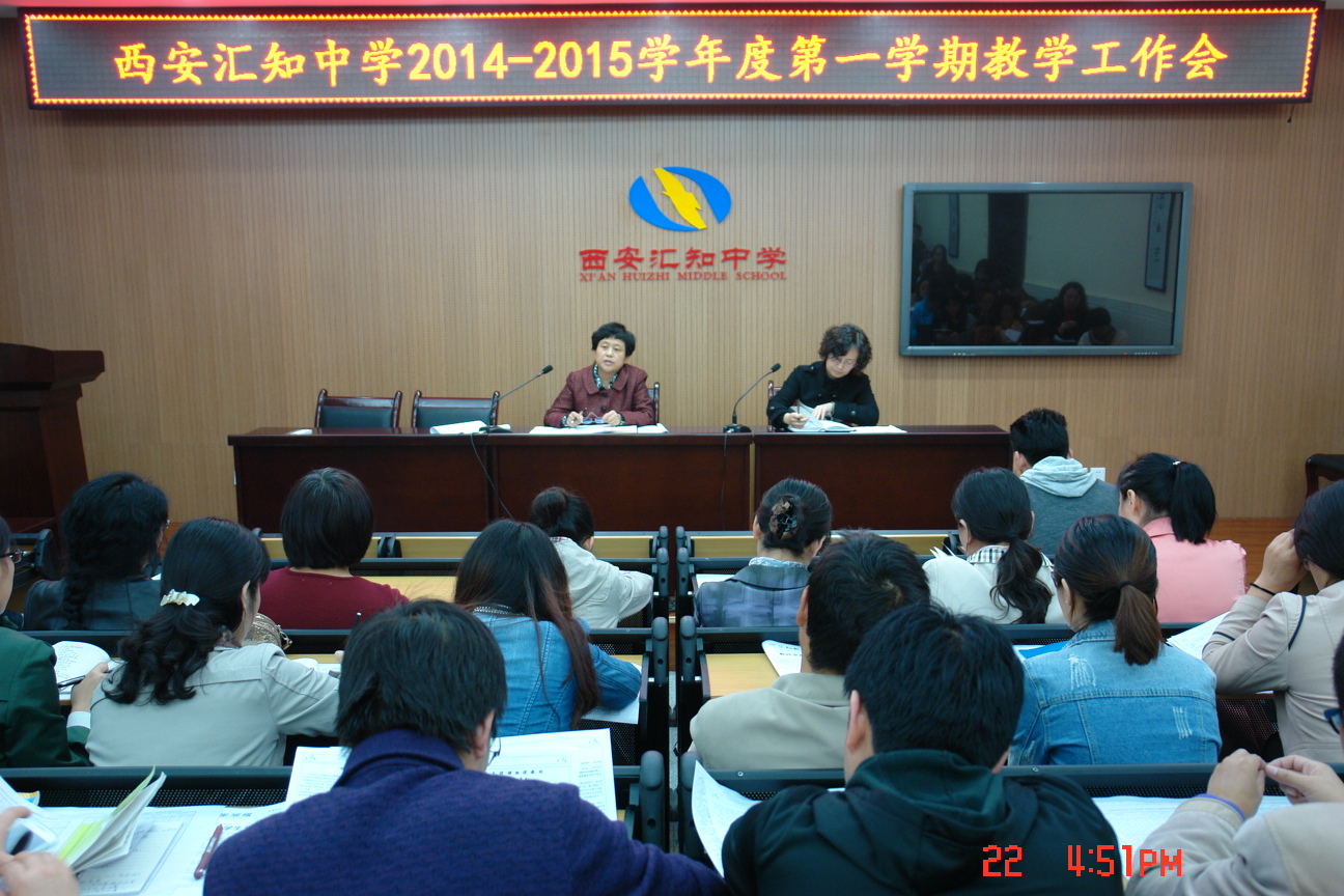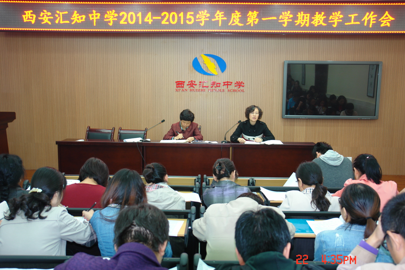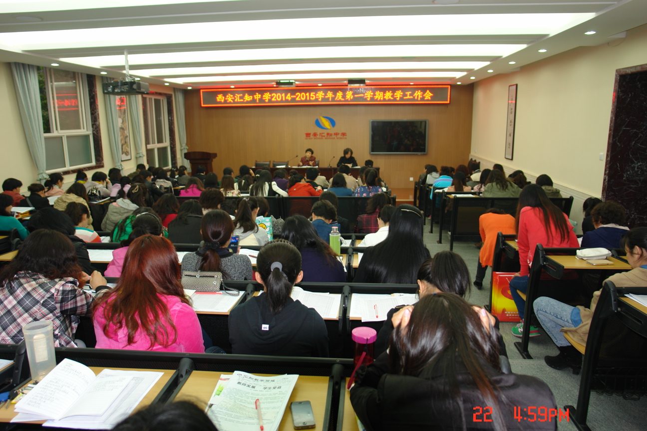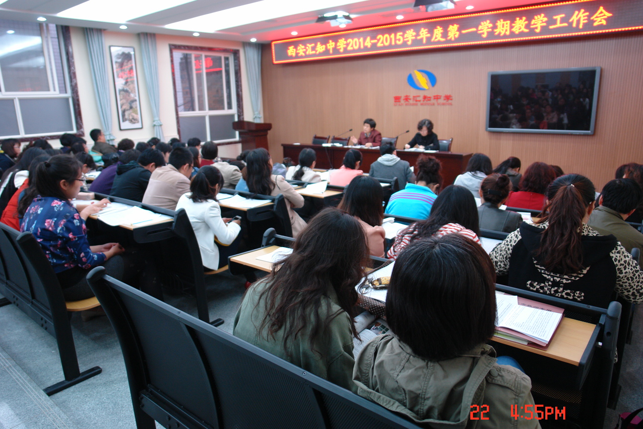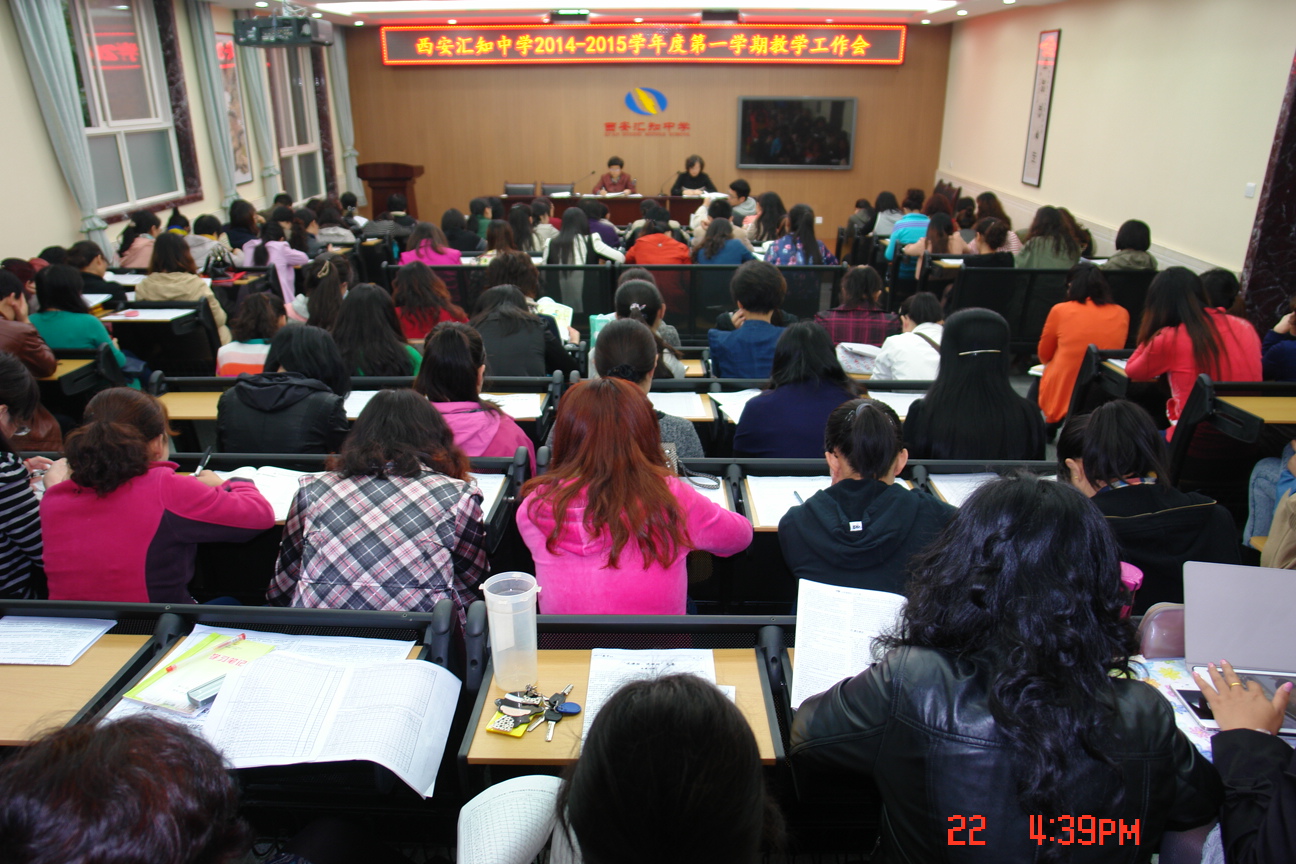 2014年10月22日下午16:30,西安汇知中学召开全体教师教学工作会。会议由教务处王彬主任主持,陈向东书记、娄疆主任、岳三会主任、全体任课教师及全体教务处干事参加会议。