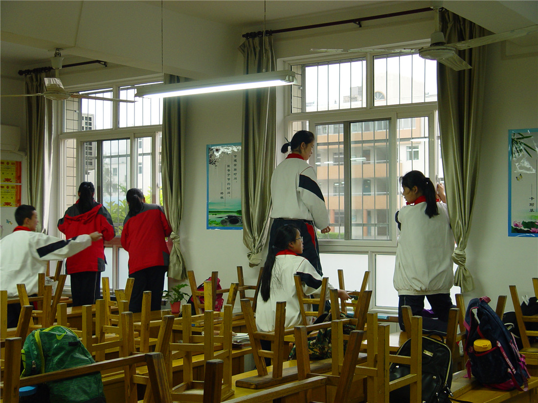 4月8日下午,同学们在老师的带领下,对办公室、教室、清洁区等进行了认真地打扫,清理地面垃圾,擦洗黑板、讲台、窗户;老师们清理杂物,收拾桌面,打扫卫生;物业组织人员对花坛、卫生间、垃圾桶等卫生死角进行了专项治理,随后学校安排了专人对办公室、教室进行了检查评比。在全体师生的努力下,教室、办公室窗明几净、地面干净,校园面貌焕然一新。通过这次校园卫生大擦洗活动,不仅美化了校园环境,也增强了师生的环保意识和卫生意识,倡导了人人参与清洁、美化环境,文明健康的生活方式。